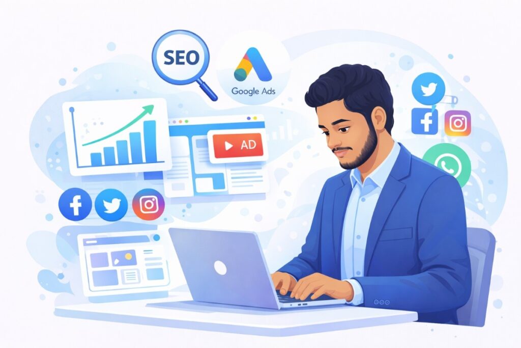 I provide end-to-end digital marketing services in Hyderabad, including SEO, Google Ads, social media marketing, content marketing, website optimization, and digital growth strategy consulting.